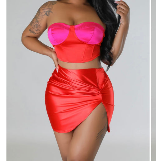 Two-Tone Satin Skirt Set